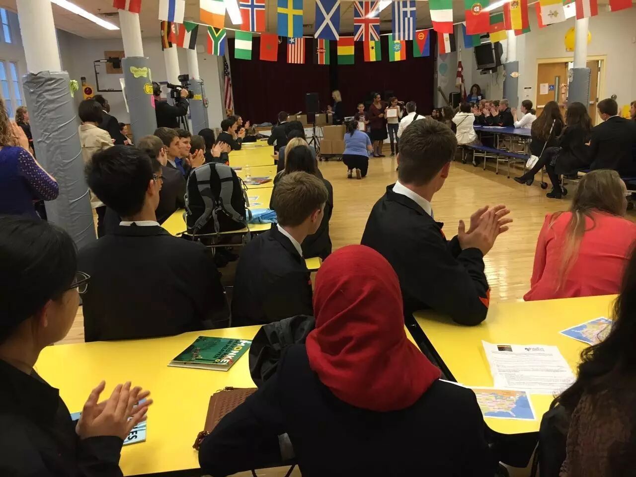 一早,志愿者们齐聚一堂来到了当地市中心的一所学校,教导主任向获奖者们布置了义工任务~
