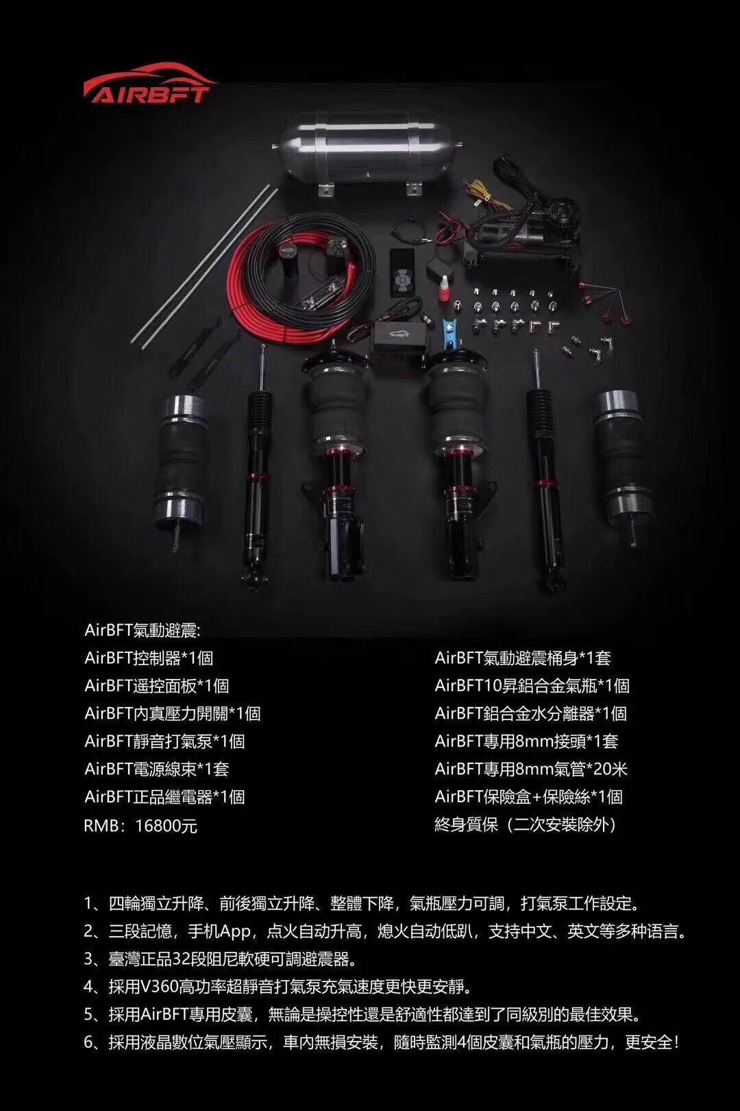 作为国内Hellaflush领航者,AIRBFT一直不断的追求避震本身的品质和舒适,给国内玩家带来更好的气动产品,让您感受更好的驾驶乐趣。上海AIRBFT气动避震是国内首家主要生产气动避震皮囊的厂家,本公司经过多年的数据测量和安装测试,不断的改进和研发新型产品,不断为客户提供给更好的改装方案,经过5年的发展,公司现已推出气动避震专用桶身,由台湾SF避震工厂代工,品质卓越,质量稳定,搭配AIRBFT新型气囊,具有更好的舒适和操控性,已成为国内一流品牌,深的国内玩家的信赖,目前已成为国内气动避震行业的龙头老大。